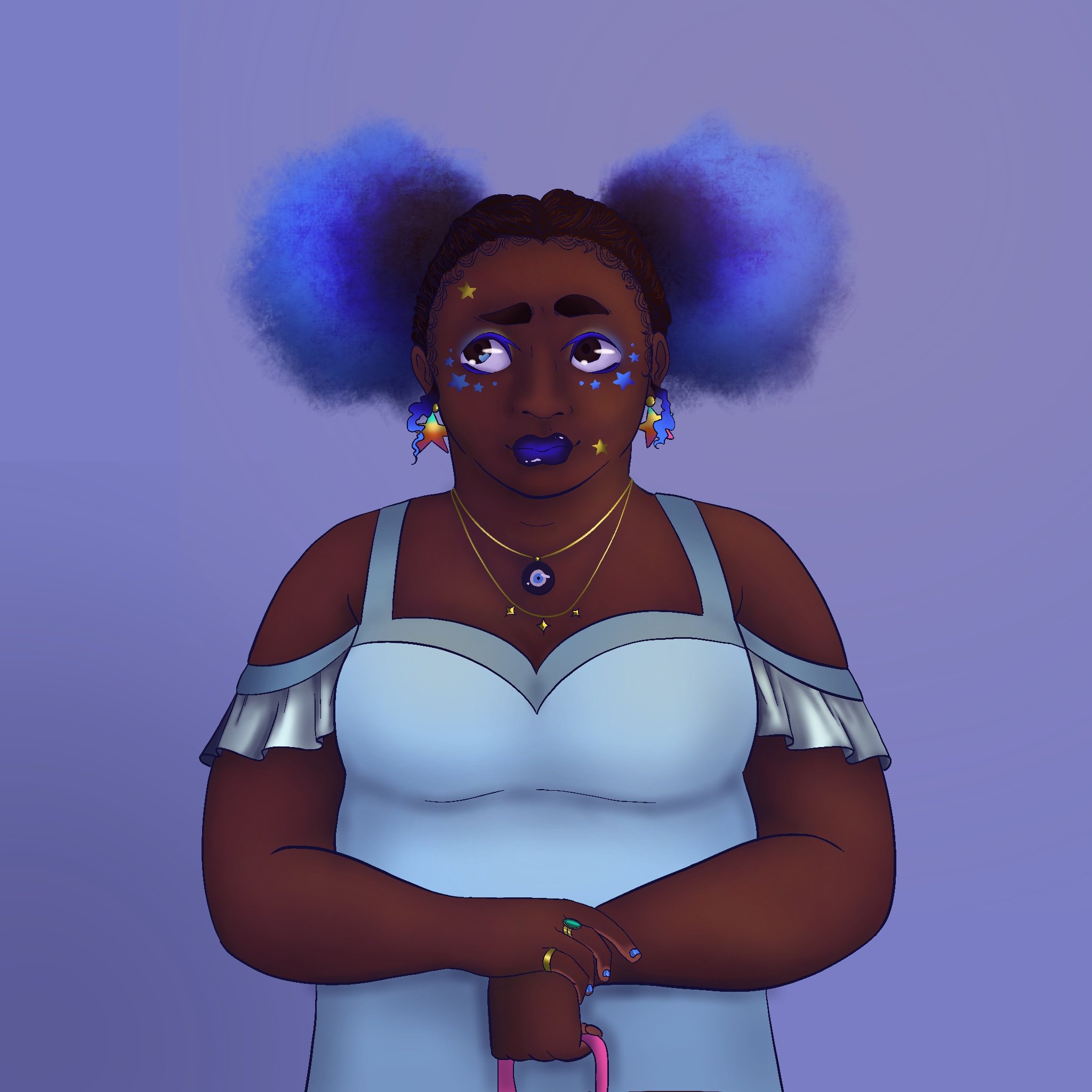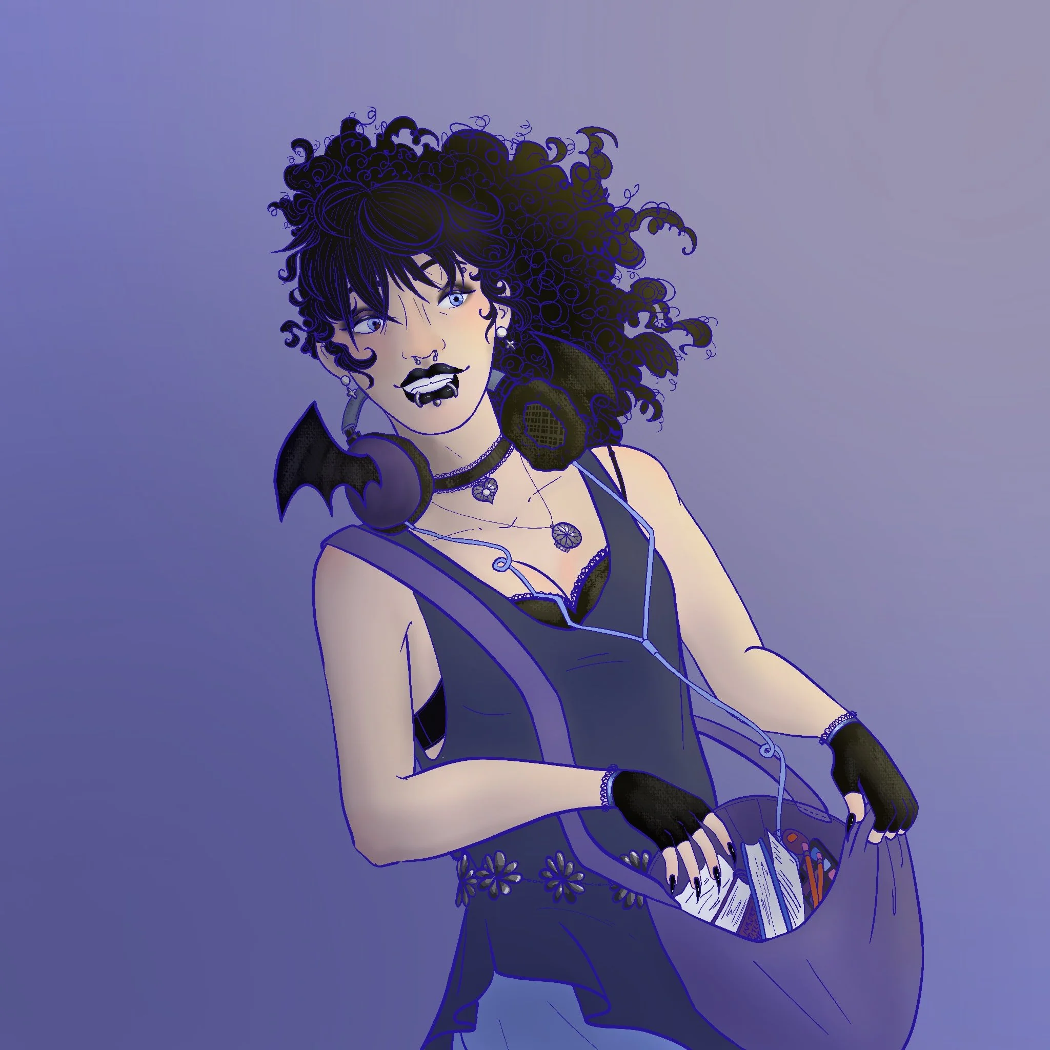 I went into this illustration hoping to capture the character’s personalities with one pose/expression with minimal outside context clues as to who they are. I also wanted an excuse to make more blue based illustrations. (I love green but I need a break from her sometimes.) I didn’t use any particular references for the poses; I just went with what felt right. Bruce is usually chaotic and messy while Dela is generally more put together and the calmest member of their friend group. I used solely procreate to create these.