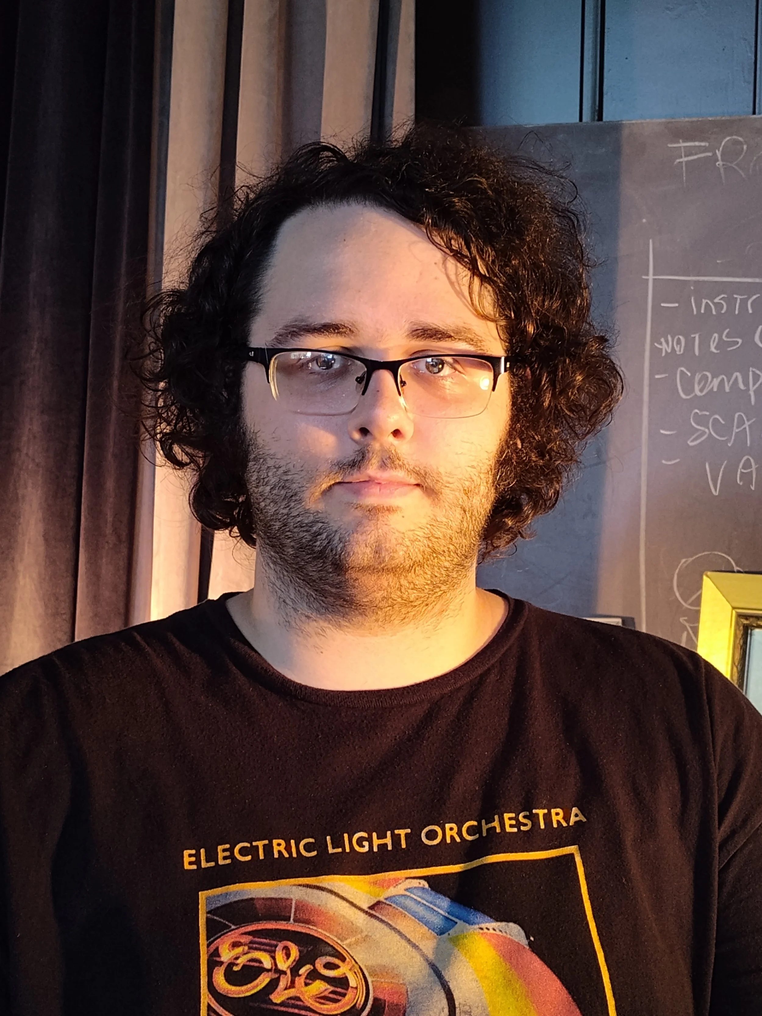 In my drawing 4 class, students where paired up and tasked with drawing portraits of each other. Due to complications at the time, I had to take a picture of my subject and do the assignment at home. I sketched out everything in an H pencil and then went over that with chalk pastels. I wanted the colors and mark making to be fun and bright because the model wanted, and I quote, “just don’t make me look like a serial killer”. Despite the blank expression I was referencing, I believe I succeeded in the task.